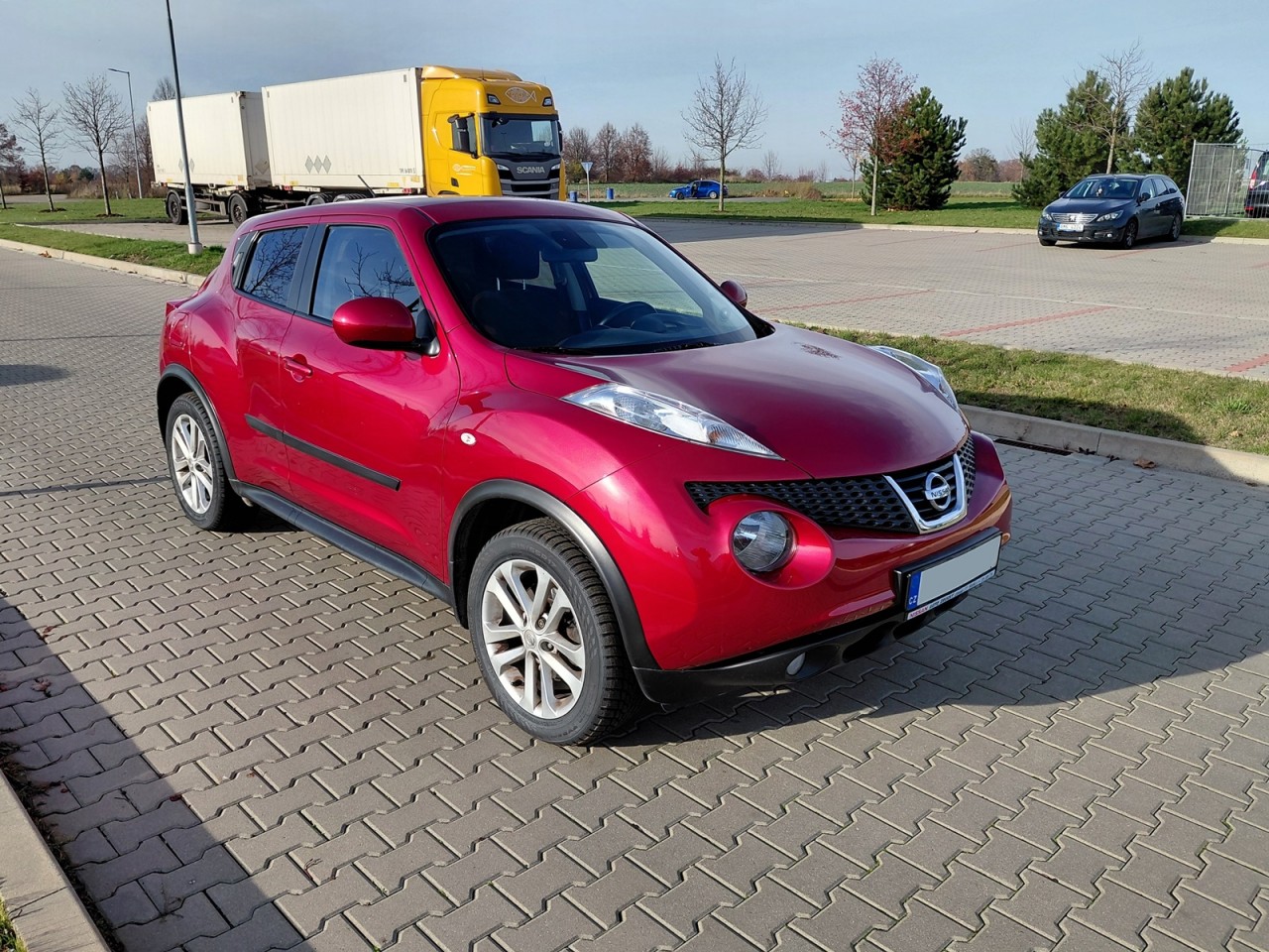 Nissan Juke 1.6 DIG-T 190 CVT 4WD Tekna, 140kW, automat, červ.metalíza, JN1FANF15U0105165, ABS, ESP, EBD, tempomat, 6 x airbag palubní počítač, aut.duální klima, volba jízdního režimu, systém Nissan Connect, navigace, 360 monitor. kamera, audio 6 repro a CD, ovl. na volantu, MP3, HF, multifunkční kožený volant, el.ovl.okna, el.ovl. zrcátka, centrál s bezdot. klíčem, výšk.nast. sedadlo řidiče, loketní opěrka, mlhovky, LED denní svícení, orig.alu 17" + nové zimní pneu Nokian, STK do 7/2027, naj.118.748km, koupeno 7.9.2011 nové v ČR, první majitel, servisní knížka, pěkný a zachovalý.