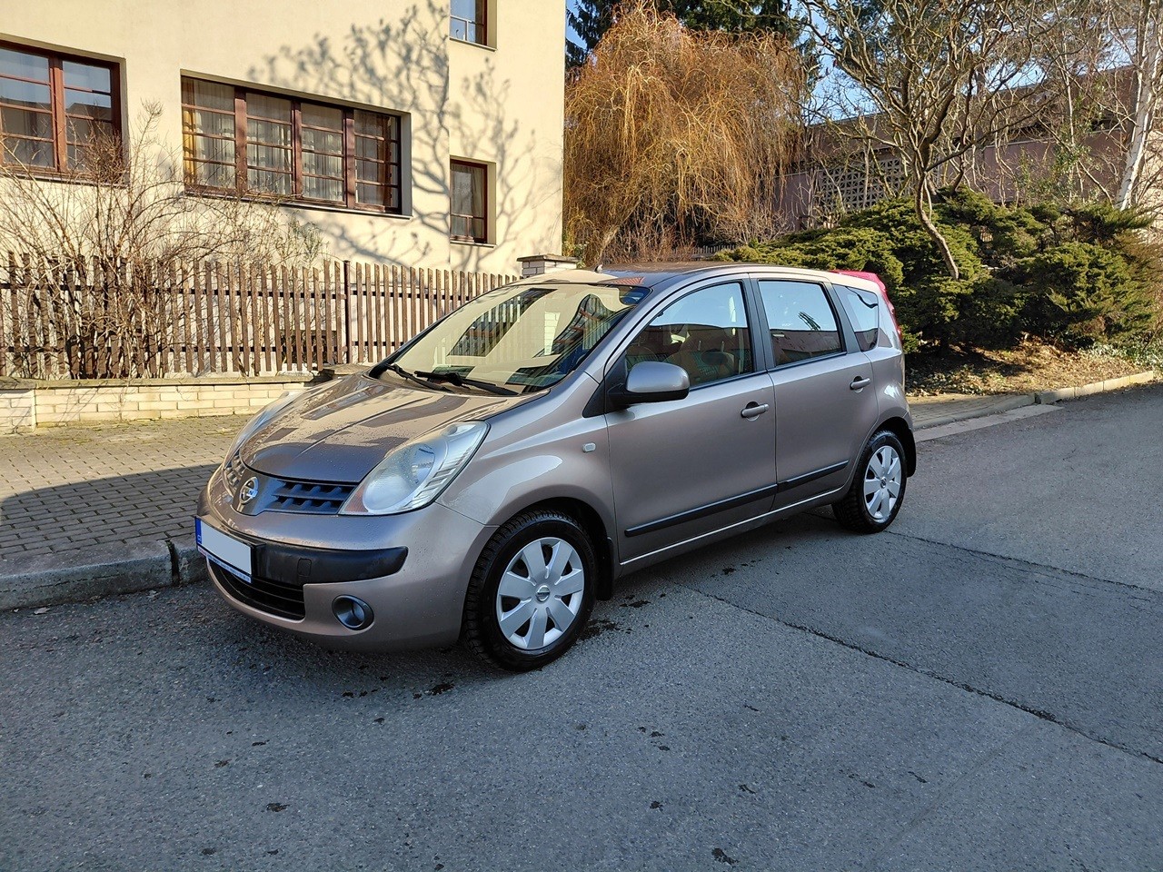 Nissan Note 1.6i A/T, 81 kW, automat, SJNFCAE11U1054467, ABS, ESP, EBD, hnědá metalíza, imobilizér, klima, rádio s CD a ovl. na volantu s RDS, multifunkční kožený volant, el.ovl.okna, el.ovl.zrcátka, centrál s dálk. ovládáním, mlhovky, denní svícení, venkovní teploměr, loketní opěrky, výšk. stav. sedadlo řidiče a spolujezdce, dělená a posuvná zadní lavice, sklápěcí poličky na zad. straně př. sedadel, taž. zařízení, po velké servisní prohlídce, nové celoroční pneu, koupeno 28.8.2006 nové v ČR, první majitelka, naj.248.767km, celkově velmi pěkný a udržovaný, nezničitelný motor, pevná cena