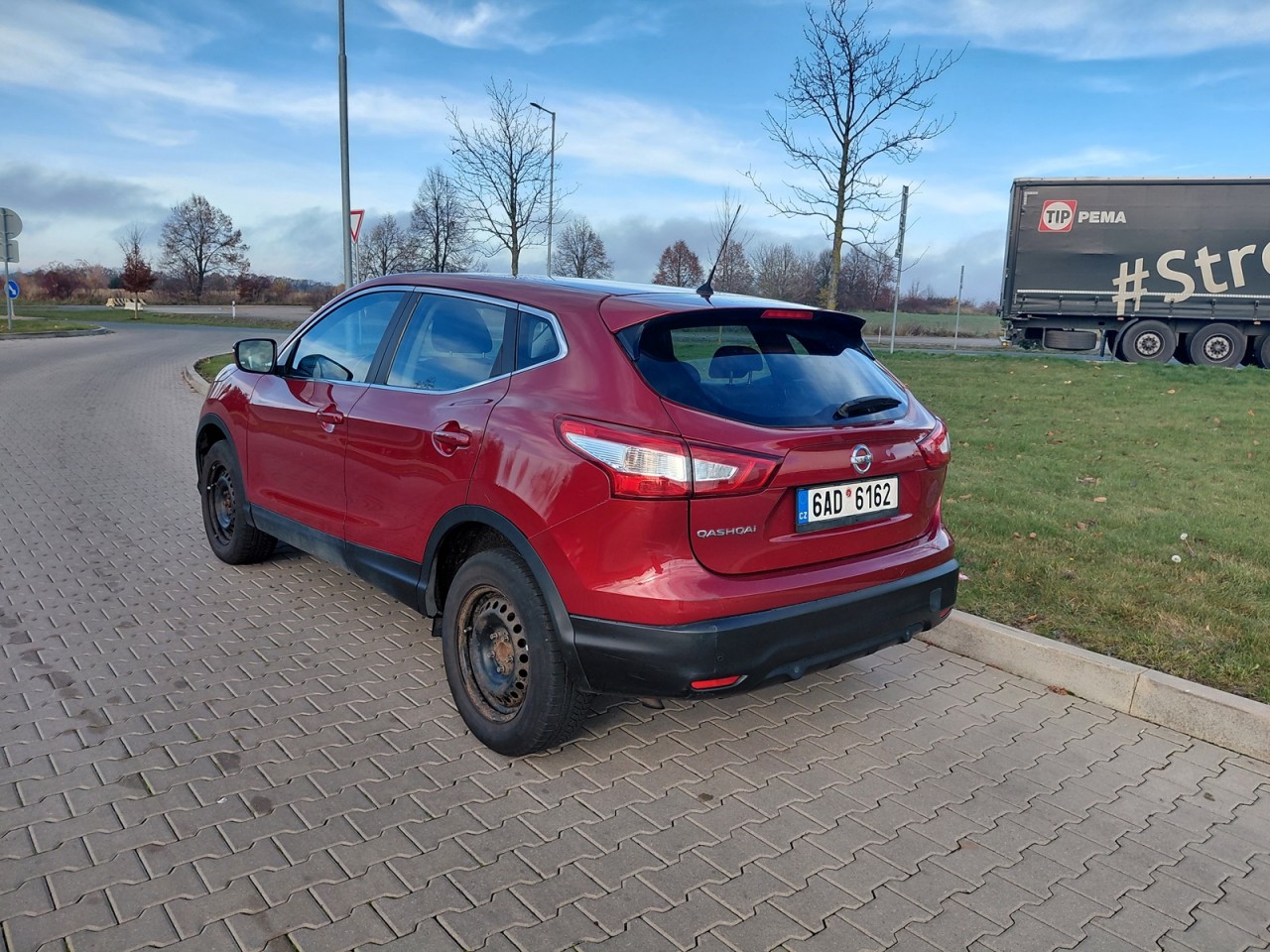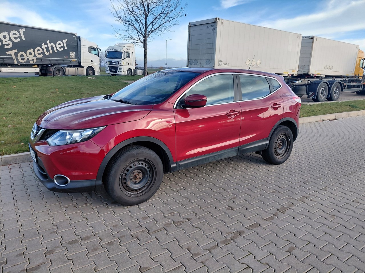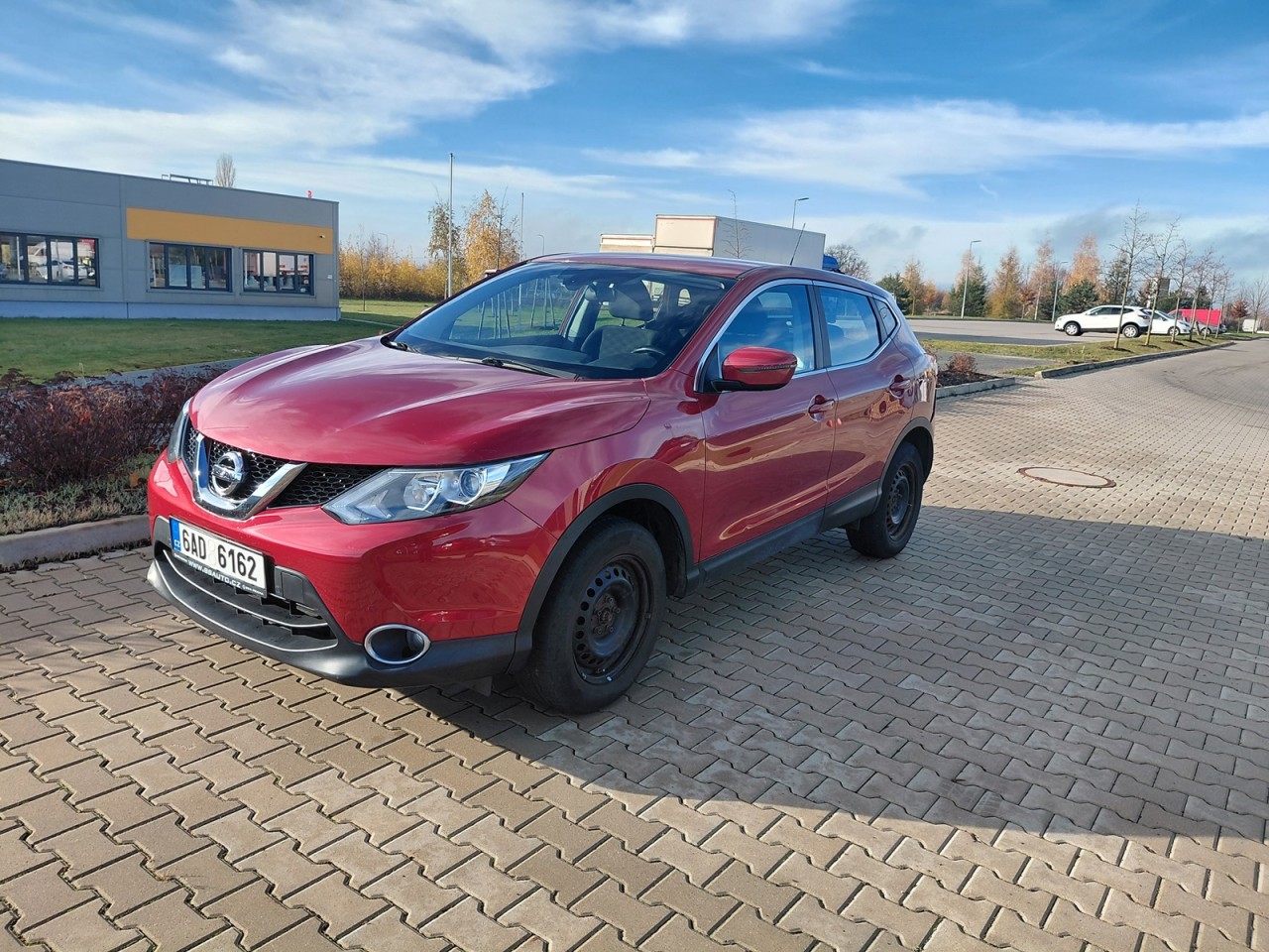 Nissan Qashqai 1.2 DIG-T Acenta , 85kW, 6.rychlostní, SJNFEAJ11U1784421, červená metalická, ABS, ESP, EBD, 6 x airbag, tempomat, palubní počítač, aut. klima, el.ovl.okna, el.ovl. a el. sklopná zrcátka, centrál. s dálk. ovládáním, audio s CD, ovl. na volantu, HF, MP3, multifunkční kožený volant, loketní opěrky, výšk. stav. sedadlo řidiče, dešťový senzor, mlhovky, orig.alu 17", sada zimních kol, naj. 101.627km, koupeno 7.4.2017 nové v ČR, první majitelka, kosmetické vady karoserie, vada motoru-jeden válec bez komprese, proto cena
